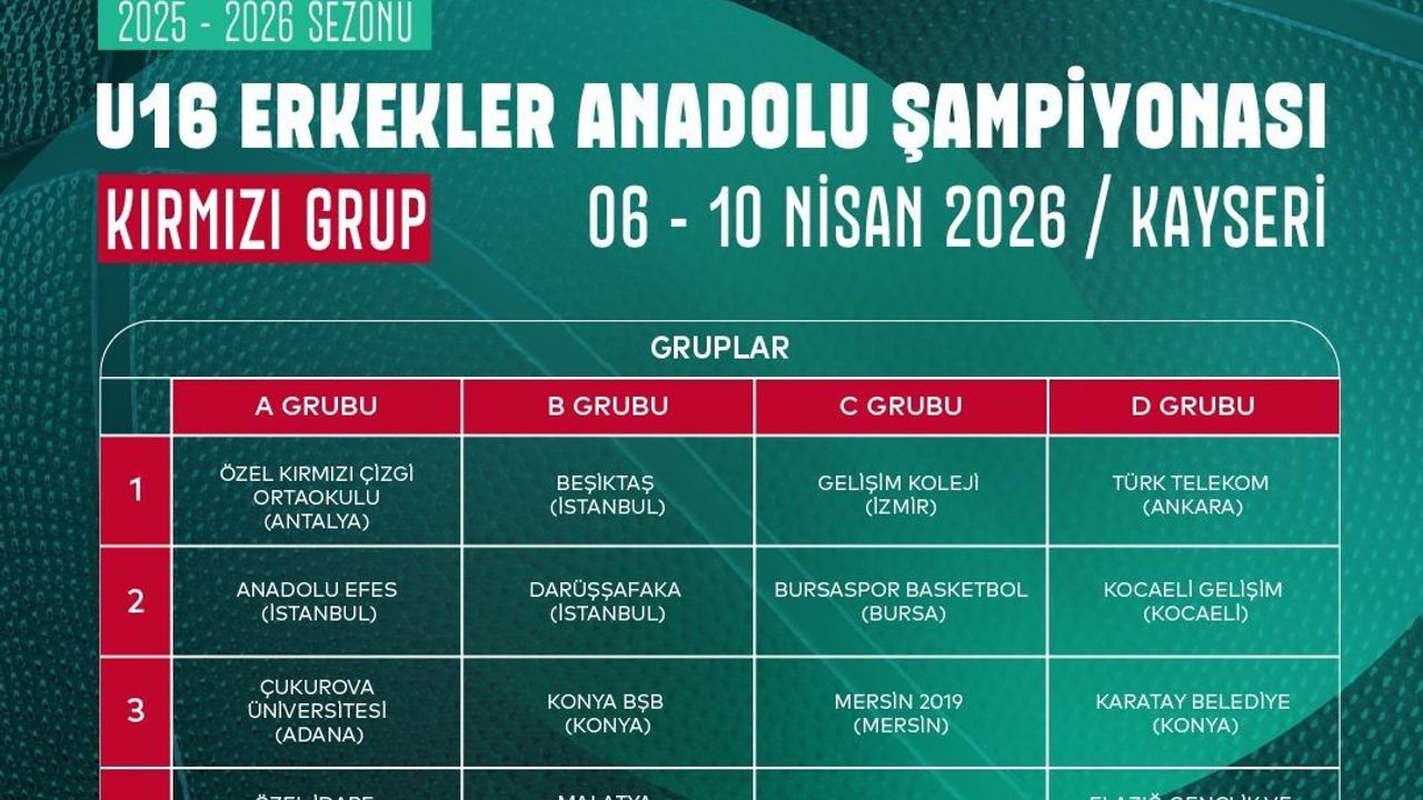 Türkiye U16 Erkekler Anadolu Şampiyonası Kırmızı Grup Maçları 06-10 Nisan tarihleri arasında Kayseri'de oynanacak.