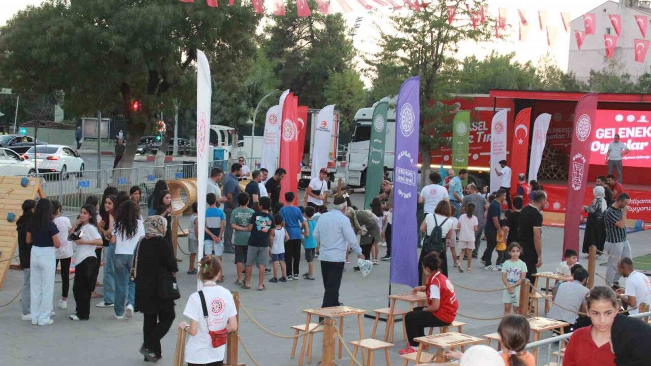 15 Temmuz Demokrasi Meydanı’nda kurulan etkinlik alanında minikler mangala, onikitaş, halat çekme, kocaayak oyunu gibi birçok geleneksel oyunu oynayarak hem eğlendi hem de kültürel değerleri yaşattı. Ailelerin de yoğun ilgi gösterdiği programda, oyun tırında görevli eğitmenler çocuklara oyunları tanıttı.