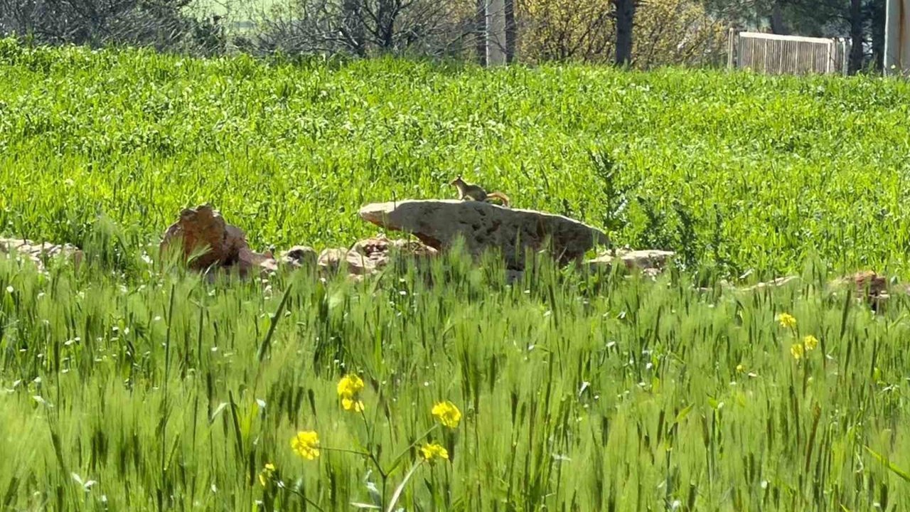 Diyarbakır'ın Kocaköy ilçesi Yenişehir Mahallesi'nde hayvanlarını otlatan çiftçi Fırat Kılıç, çağla yiyen bir kızıl sincap gördü. Kılıç, o anları cep telefonu ile görüntüledi. Görüntülerde yavru sincabın çağlayı kemirdiği anlar yer aldı.