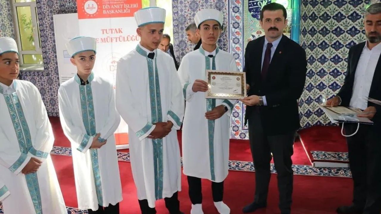 Ağrı’nın Tutak ilçesinde hafızlık eğitimini tamamlayan hafızlar için icazet merasimi düzenlendi.