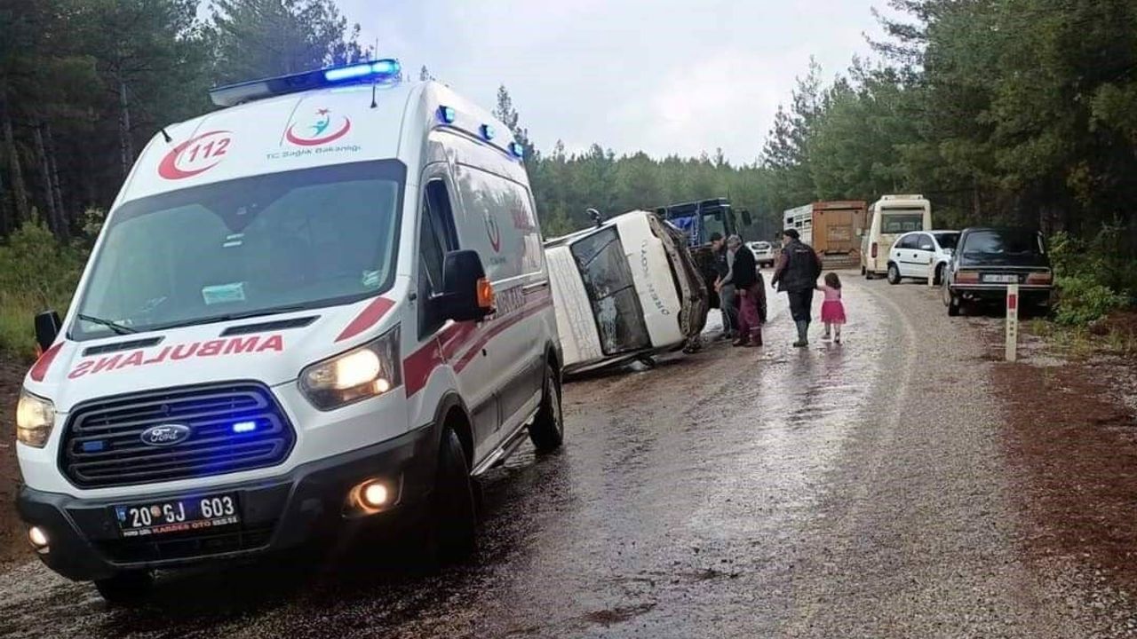 Kaza, Acıpayam ilçesine bağlı Çakır Mahallesi’nde meydana geldi. Edinilen bilgiye göre; bir grup tütün işçisi, tarladaki mesailerini tamamladıktan sonra evlerine dönmek için minibüsle yola çıktı. Çakır’dan Ören Mahallesi’ne doğru seyir halindeki minibüs, yağmurun yağmasıyla kayganlaşan yolda, sürücüsünün hakimiyetinden çıktı. Yolda zikzaklar çizerek savrulan minibüs, devrilerek durabildi. Kazanın ardından ihbar üzerine olay yerine sağlık ve trafik ekibi sevk edildi. Sağlık ekibi, kazada yaralanan 5 kişiye, olay yerinde yaptığı ilk müdahalenin ardından hastaneye kaldırdı.