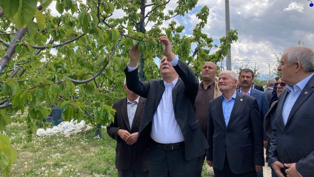 Bayraktar programı çerçevesinde Türkiye’nin önemli kiraz üretim merkezlerinden biri olan Sultandağı ilçesini ziyaret etti. Burada çiftçileri ile bir araya gelen ve don afetinin vurduğu kiraz bahçelerini gezen Bayraktar ardından bir açıklama yaptı. Açıklamasında doğal afetlerin uç noktada yaşandığına dikkat çeken Bayraktar, "Nisan yağışlarını beklerken yağmurların arkasından gelen kar çok ciddi manada 65 ilimizde maalesef üzülerek ifade ediyorum bazı meyve bahçelerinde yüzde 100’lere varan oranda zarar verdi. Tabii bu beklediğimiz bir durum değildi aslında insan yağışlarını bekliyorduk hem yeraltı sularının beslenmesi açısından hem de barajlarımızın şu rezervlerinin artması açısından önemliydi. Ama böyle bir kar yağışı ve kar yağışının arkasından 3 gün süren don olayı maalesef hem ürünlerimizi hem de üreticimizi perişan etti" dedi.