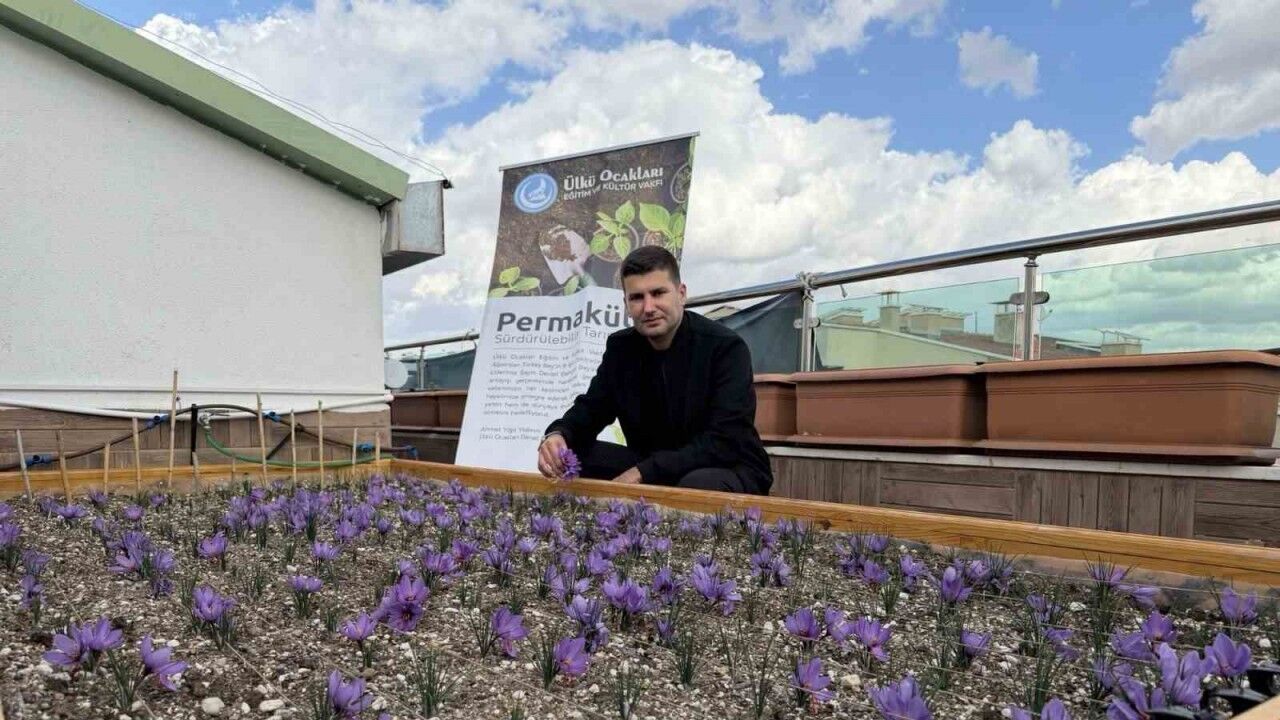 Ülkü Ocakları Genel Merkezi’nin çatısında gerçekleştirilen proje kapsamında, safran bitkisi başarıyla yetiştirildi.