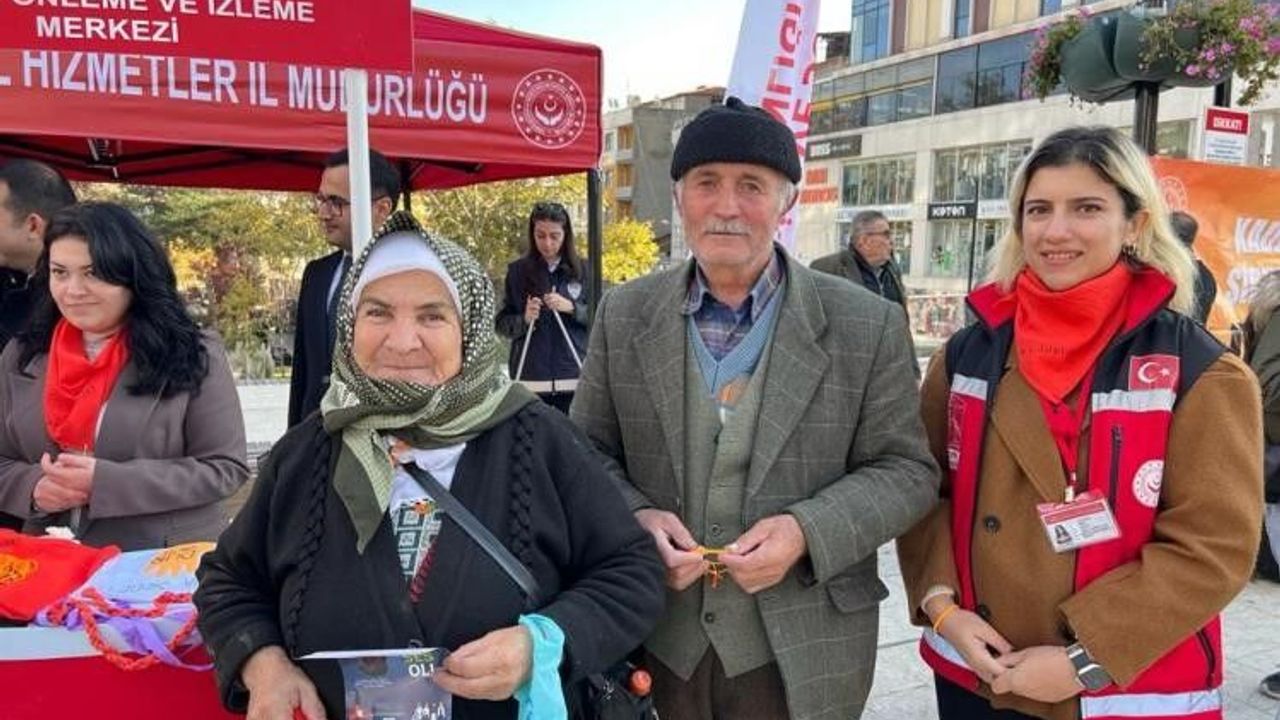 Aile ve Sosyal Hizmetler İl Müdürlüğü tarafından kadına şiddete yönelik farkındalık çalışması için Atatürk Parkı’na stant kuruldu. Stantta broşür dağıtımı ve çeşitli şiddet yöntemlerine maruz kalmamak adına vatandaşlar bilgilendirildi. Standa gelen yaşlı bir çift önce özel bireylerin yaptığı bileklikten alarak destek oldu ardından "Kadına şiddete sıfır tolerans" dedi.
