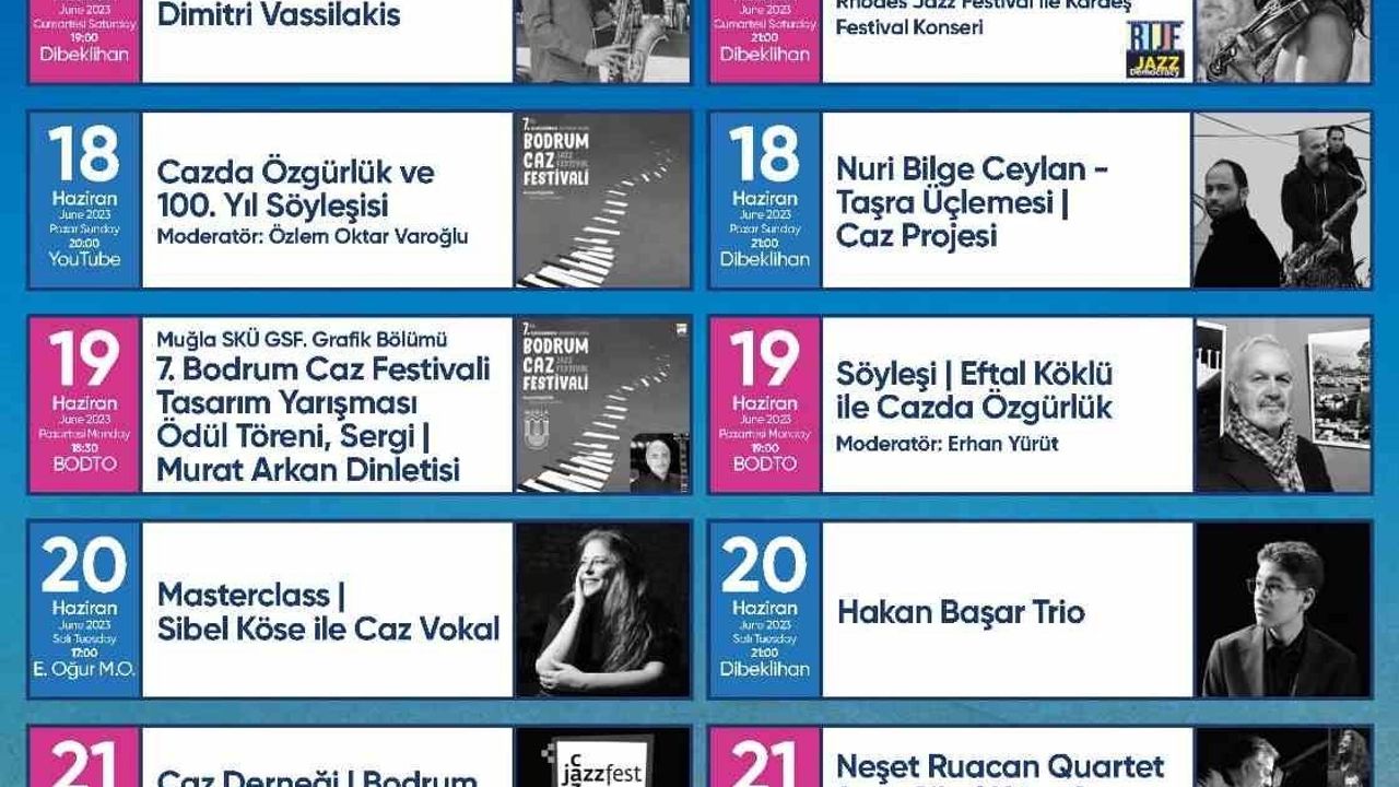 European Jazz Network üyesi olan festivalde Kerem Görsev Trio, Maria Manousaki Trio | Rhodes Jazz Fest ile Kardeş Festival Konseri, Nuri Bilge Ceylan-Taşra Üçlemesi Caz Projesi, Hakan Başar Trio, Neşet Ruacan Quartet feat. Sibel Köse & Efe Erdem |Ayşe Gencer Anısına, Cazın Türküsü-Bodrum | Zafer Çebi Quartet feat. Didem Kasal Esentürk, Ayhan Sicimoğlu & Latin All Stars, Aşkın Arsunan Quintet konserleri dinleyicilerle buluşacak.