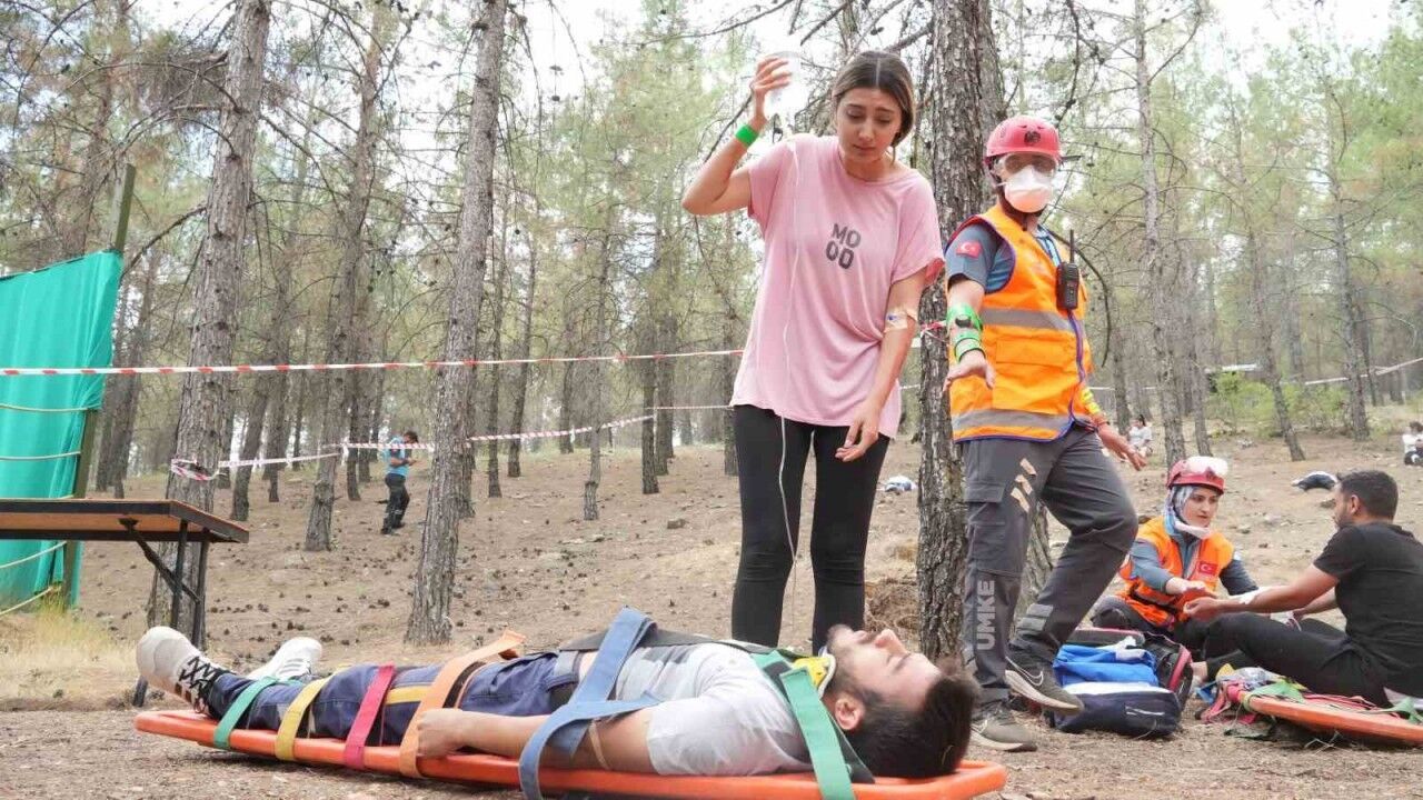 Ulusal Medikal Kurtarma Ekibi’ne yeni katılan gönüllüler için ormanlık alanda yaralı kurtarma tatbikatı düzenlendi. Yapılan makyajla gerçeğe yakın yaralı görüntüsü oluşturulan temsili yaralılara müdahale eden ekiplerin müdahale süresi ve davranışlarında sergiledikleri performans dikkat çekti. Terör saldırısı ve kimyasal saldırı olmak üzere iki etaptan oluşan tatbikatta her detay düşünülürken tatbikatın her aşaması nefes kesen görüntülere sahne oldu. Makyajla gerçeğe yakın yaralı görünümüne kavuşturulan yaralılara müdahale eden ekipler tatbikatı başarıyla tamamladı.