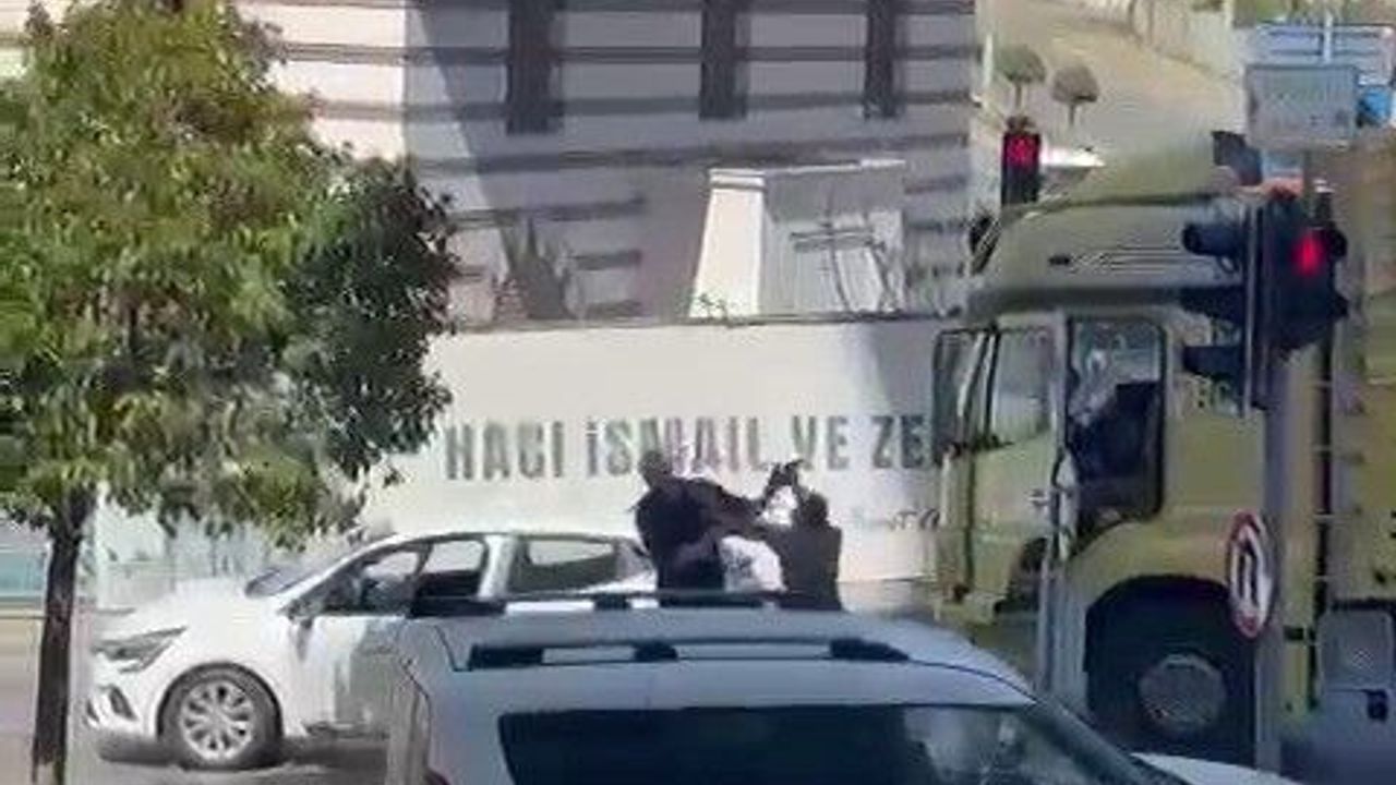 Ümraniye’de kamyon şoförü, trafikte yol verme meselesi yüzünden tartıştığı sürücüye çekiçle saldırdı. O anlar cep telefonu kamerasına yansıdı.