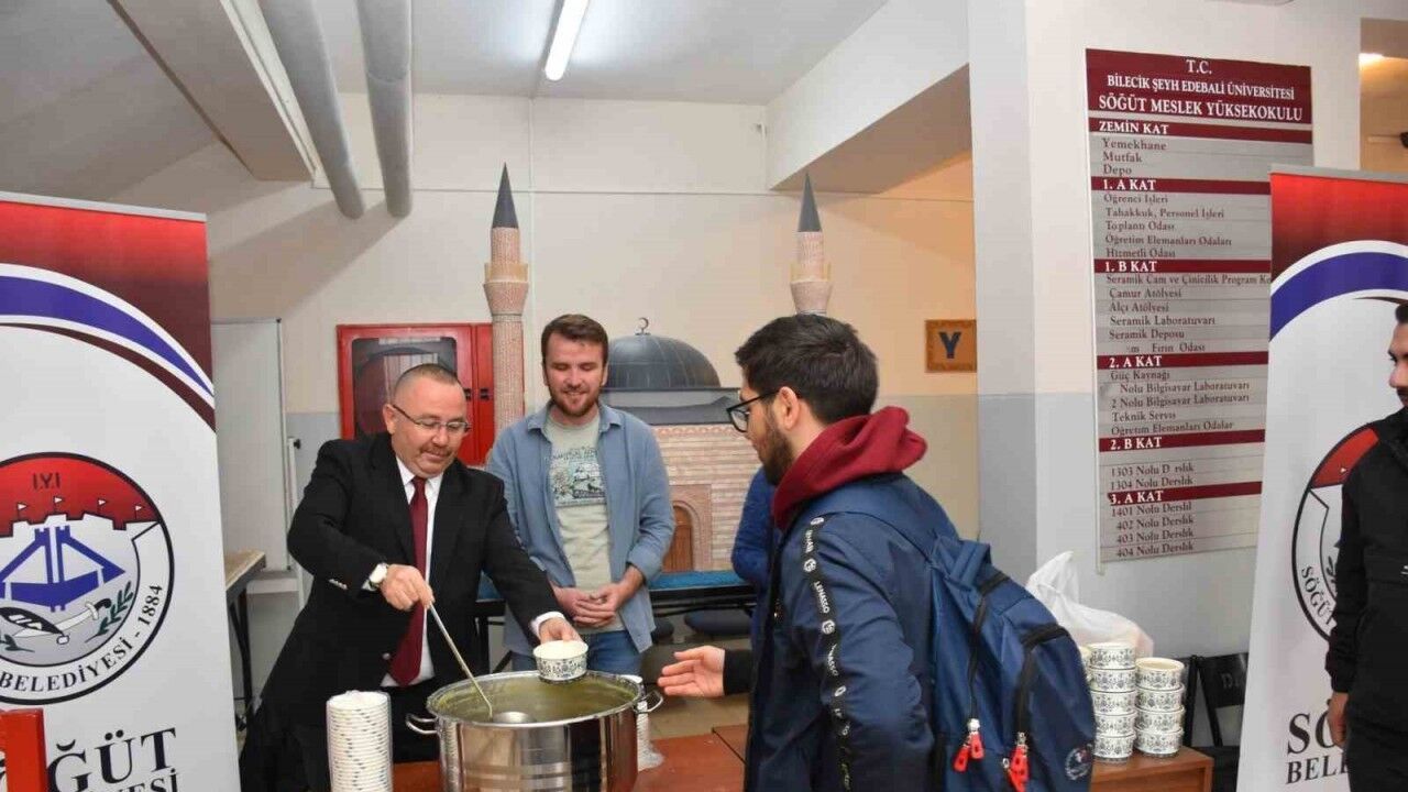 Bilecik’in Söğüt ilçesinde üniversite öğrencilerine sıcak çorba ikramı yapıldı.