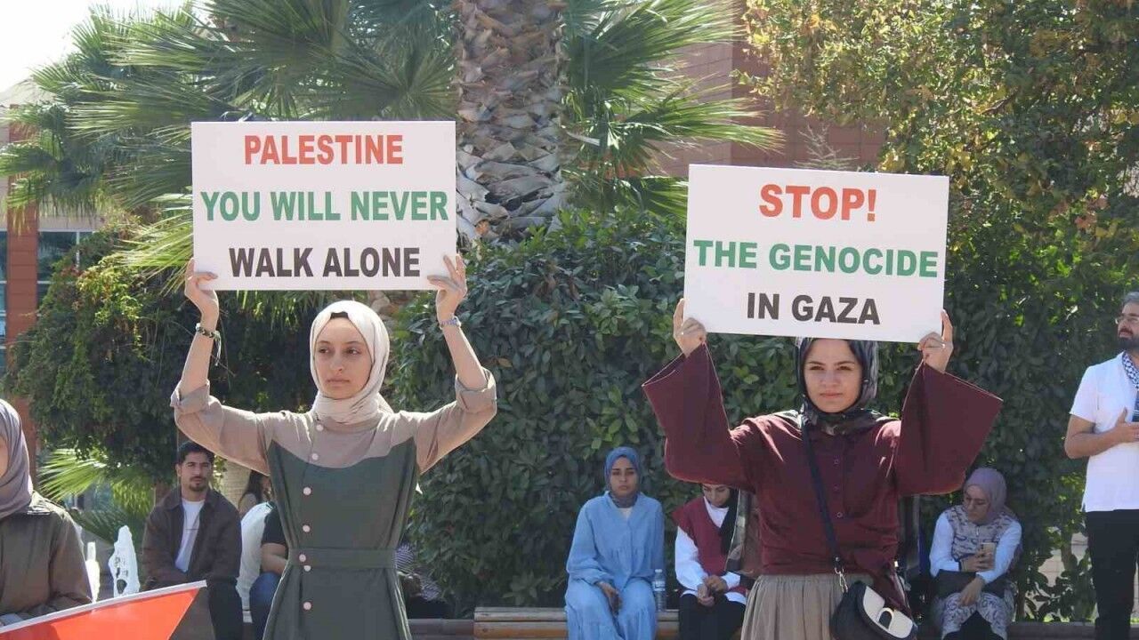 Filistin halkına yapılan zulmün tüm insanlığa yapılmış bir saldırı olduğunu belirten ve öğrenciler adına açıklama yapan Ali Anamur, "Siyonist işgalcileri destekleyen her türlü ürünün boykot edilmesini talep ediyoruz. Unutulmamalıdır ki Gazze’de yaşanan bu vahşet sadece Filistinlilere değil, tüm insanlığa yapılmış bir saldırıdır. Bizler Filistin halkının yanında olduğumuzu ve onların acılarını yüreklerimizde hissettiğimizi ilan ediyoruz" diye konuştu