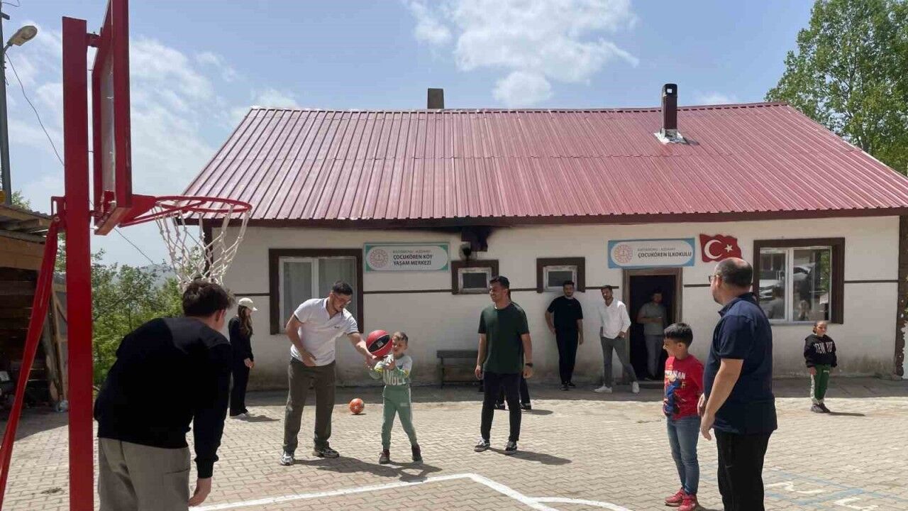Kastamonu’da eğitim gören üniversite öğrencileri, Azdavay ilçesindeki Çocukören köyünde bulunan köy okuluna kütüphane ile çocukların oyun oynayabileceği basketbol ve futbol alanları yaptı.