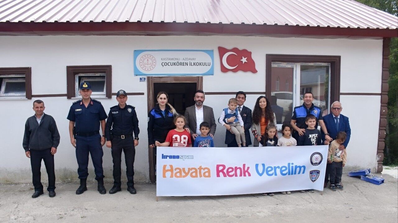 Animasyon filminin de izletildiği Azdavay Çocukören Köyü İlkokulunda öğrencilere okuma seti, boyama kitabı, kalem seti, minik polis kimlik kartı, not defteri, etiket gibi kırtasiye malzemesi ve ahşap oyun setleri hediye edildi. Ekipler, Azdavay Çocukören Köyü İlkokulu sınıf öğretmeni Haydar İkizoğlu ile de görüşerek okul ve köy hakkında bilgiler aldı.