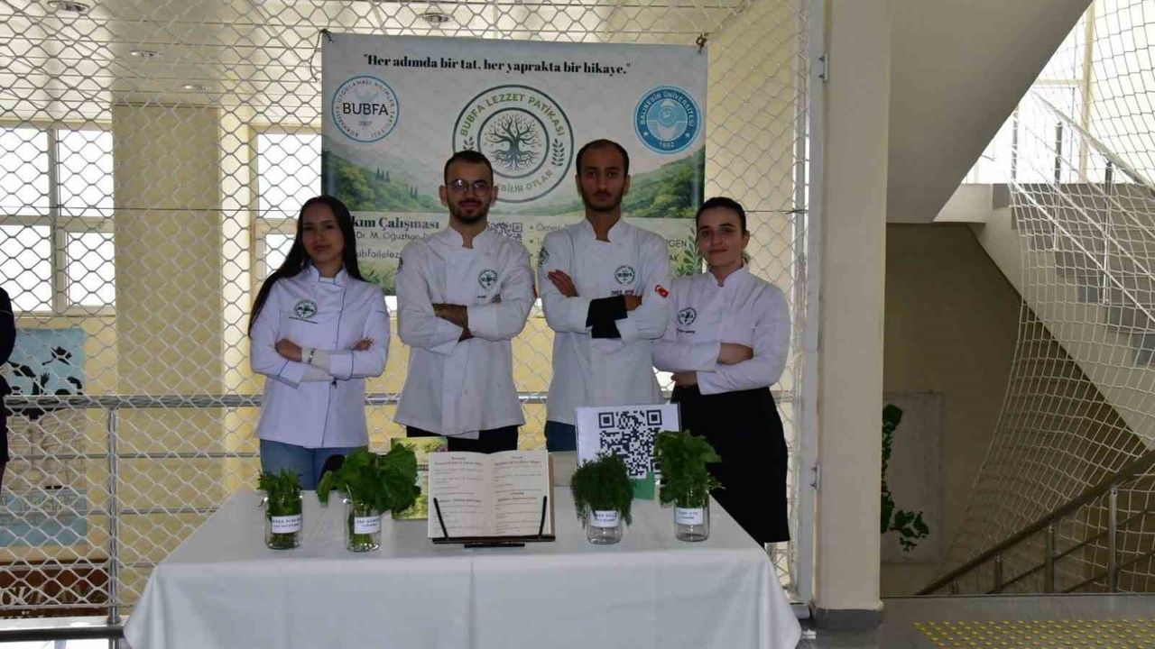 'Her Adımda Bir Tat, Her Yaprakta Bir Hikâye' mottosuyla hayata geçirilen proje, Ege Bölgesi'nde yetişen yenilebilir yabani otları gastronomik, kültürel ve ekolojik yönleriyle tanıtarak yerel bilgi birikimini kayıt altına almayı ve sürdürülebilir mutfak kültürüne katkı sağlamayı hedefledi. Gerçekleştirilen projenin ilk aşamasında Edremit ve Burhaniye çevresindeki pazarlara gidilerek bu konuda bilgili kişilerle röportaj yapıldı. Bu röportajlar doğrultusunda detaylı araştırmalar neticesinde içerisinde yenilebilir otların faydaları, rotaları ve yemek tarifleri bulunan bir kitapçığa dönüştürüldü. Proje kapsamında hazırlanan kitapçığın tanıtım gününe Burhaniye Uygulamalı Bilimler Fakültesi Dekanı Prof. Dr. Mehmet Oğuzhan İlban ve Fakülte Öğretim Elemanı Arş. Gör. Setenay Melek Yurttabir katılım gösterdi. Kitapçığın tanıtımının ardından Burhaniye Uygulamalı Bilimler Fakültesi Dekanı Prof. Dr. Mehmet Oğuzhan İlban'ın danışmanlığında, Fakülte Gastronomi ve Mutfak Sanatları Bölümü 3. sınıf öğrencileri Durdu Can Çaylak, Ömer Aydın, Ahmet Hakan Gergen, Zeynep Gedik ve Tuğba Türker tarafından yürütülen proje kapsamında, kitapçıkta yer alan yemek tarifleri fakülte mutfağında uygulamalı olarak hazırlanarak hayata geçirildi. Etkinlik sonunda Prof. Dr. Mehmet Oğuzhan İlban, öğrencilerin yerel gastronomi mirasına sahip çıkma ve akademik bilgiyi saha çalışmalarıyla birleştirme becerisine dikkat çekerek, 'Bu proje ile yenilebilir yabani otların doğru, bilinçli ve sürdürülebilir kullanımına yönelik önemli bir kaynak ortaya konulmuştur. Öğrencilerimizin araştırma sürecinde gösterdiği sorumluluk, ekip ruhu ve özveri bizleri son derece memnun etmiştir. Fakültemiz, yerel değerleri koruyan ve topluma katkı sunan bu tür çalışmaları her zaman desteklemeye devam edecektir.' ifadelerini kullandı.
