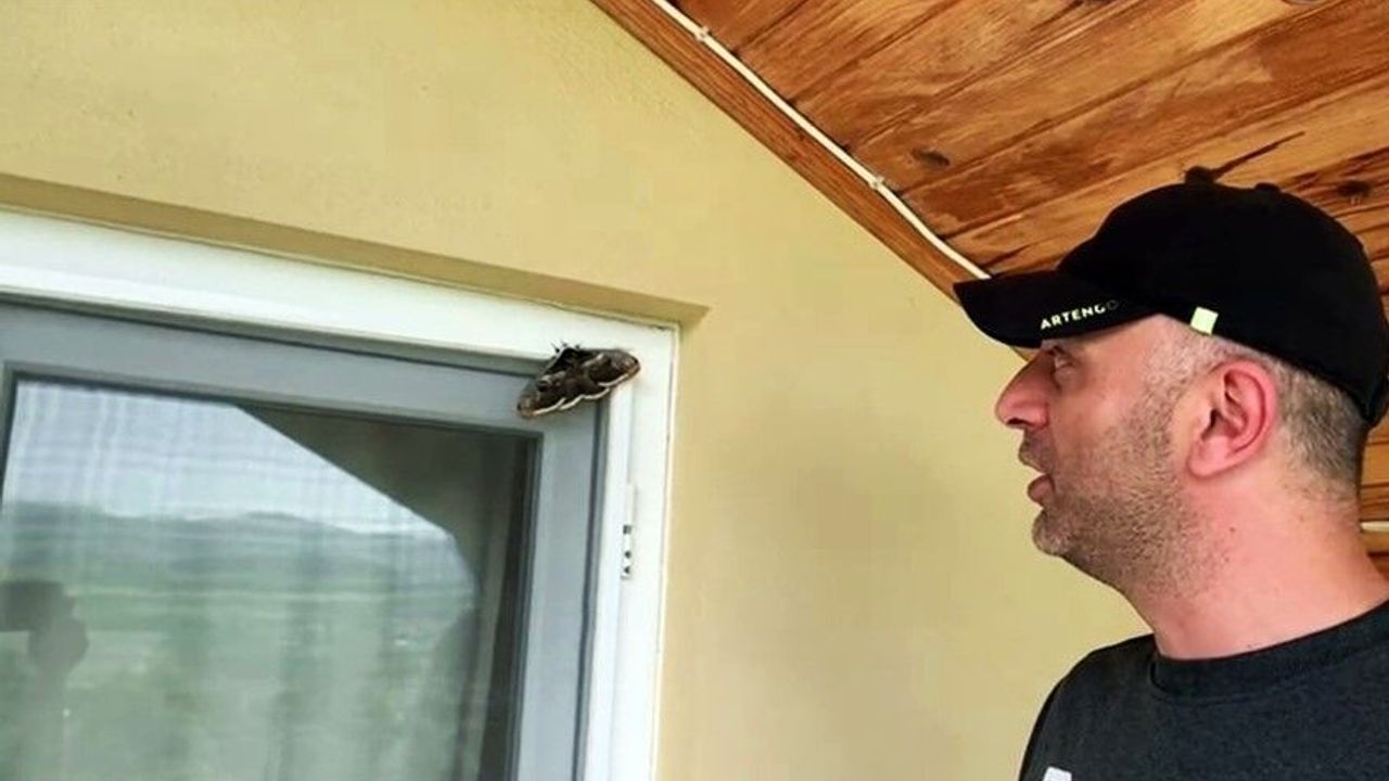 Kelebeği görerek hayrete düşen ve cep telefonu ile kayıt eden Ersin Yalçın, "İki gündür evimizin penceresinde duruyor bu kelebek. Ve internette araştırdığımız zaman bu türün ‘tavus kelebeği’ olduğunu gördük. Kelebeğin kanat açıklığı 15-16 santimetreye kadar ulaşıyor. Çok güzel desenleri var. Üzerinde baykuş gözüne benzeyen ve dalgalı desenler var. Güzel ve nadir bir kelebek, ilk defa böyle bir şeye rastladığımız için şaşırdık" dedi.