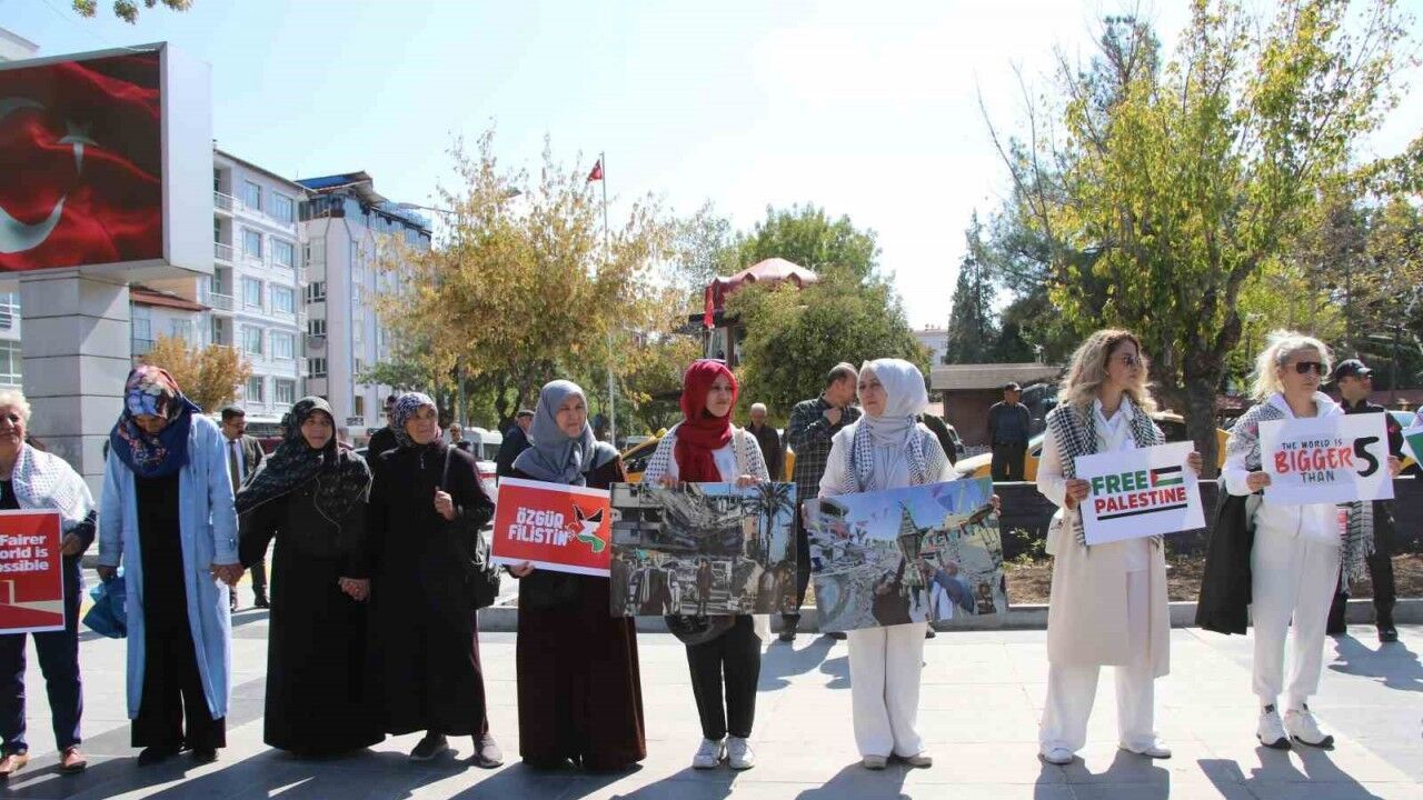 Uşak’ta bir grup kadın, Gazze’ye destek için 15 Temmuz Şehitler Meydanı’nda "Gazze İçin Sessiz Çığlık" etkinliği düzenledi.
