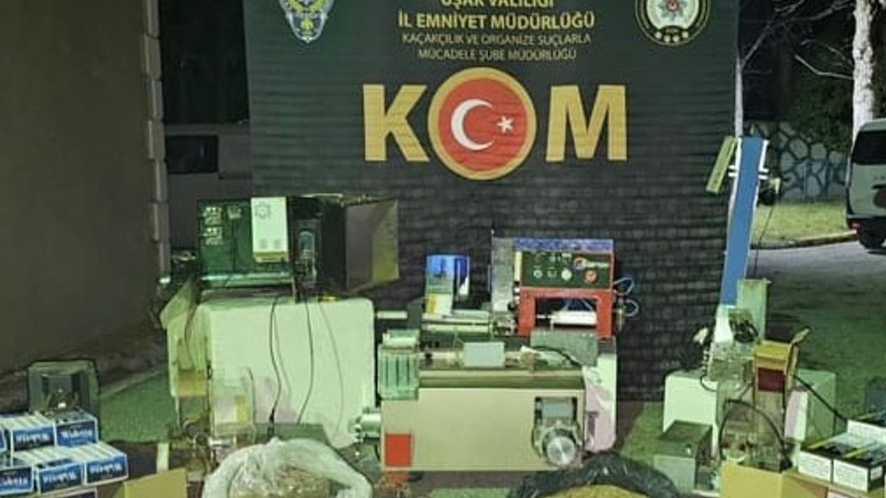 Uşak İl Emniyet Müdürlüğü'ne bağlı Kaçakçılık ve Organize Suçlarla Mücadele (KOM) Şube Müdürlüğü ekipleri, tarafından kaçakçılıkla mücadele kapsamında yürütülen çalışmalarda edinilen bilgiler çerçevesinde 1 adrese operasyon düzenlendi. Adreste yapılan aramada 15 kilo kaçak kıyılmış tütün, 17 bin adet kaçak makaron ve 4 adet sigara sarma makinesi ele geçirildi.