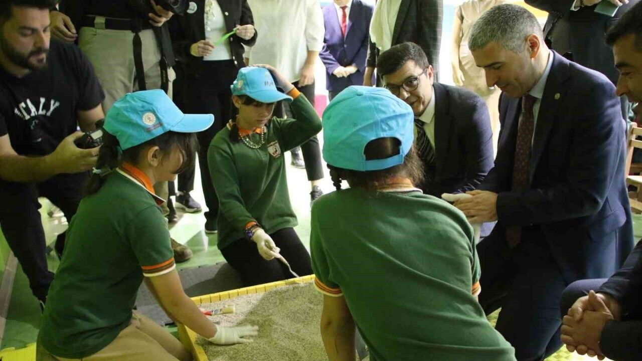 Ziyaret kapsamında Vali Aktaş, oyun alanı içeresinde öğrencilerle bir araya gelerek, burada arkeolojik kazı ve resim etkinliğine eşlik etti.