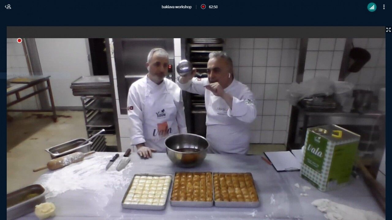 Düzce Üniversitesi Akçakoca Turizm İşletmeciliği ve Otelcilik Yüksekokulu tarafından düzenlenen “Baklava Workshop” programı, İstanbul’da pasta baklavacılık mutfağından çevrim içi olarak gerçekleştirildi.