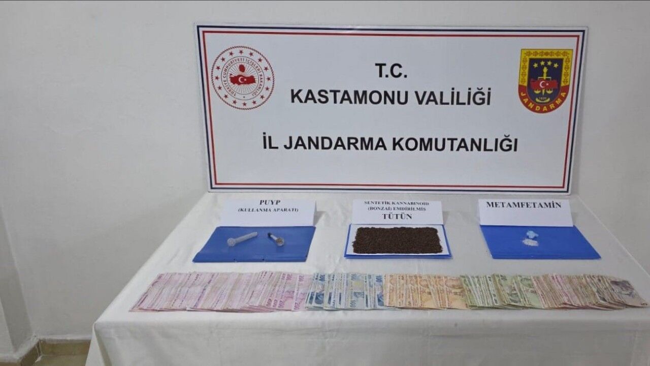 Edinilen bilgiye göre, Kastamonu İl Jandarma Komutanlığı ekiplerince uyuşturucu madde imal ve ticareti yapan şahıslara yönelik yürütülen çalışmalar neticesinde, M.Ü.’nün aracında 4 Nisan tarihinde yapılan aramada bir miktar metamfetamin, kannabinoid ve suçtan elde edildiği değerlendirilen 34 bin TL nakit para ele geçirildi. Jandarma ekiplerince gözaltına alınan M.Ü. tutuklandı.