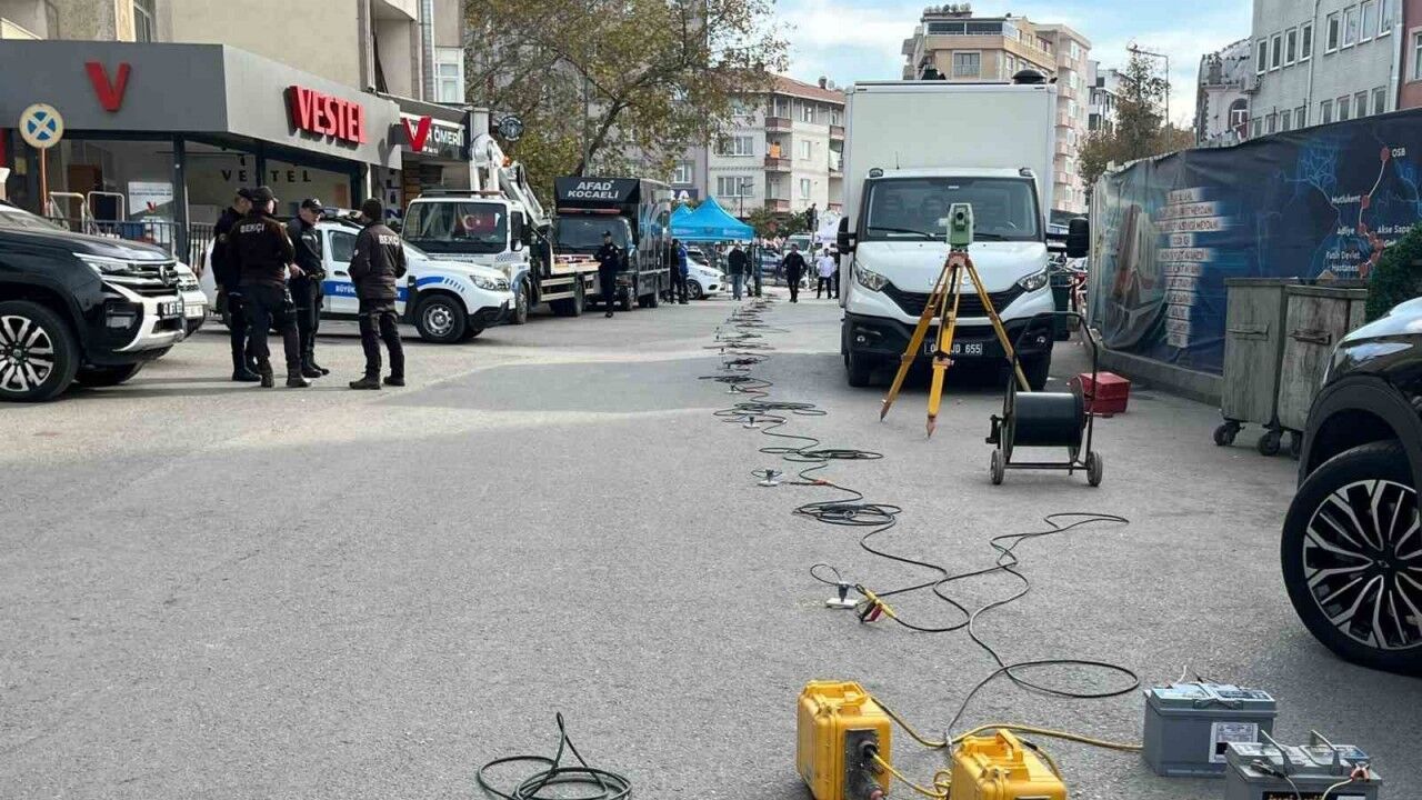 Kocaeli’nin Gebze ilçesinde binanın yıkıldığı bölgede, uzman ekipler "sismik yansıma" yöntemini kullanarak ve ağırlık düşürmeyle sismik dalgalar oluşturarak yerin metrelerce derinliğini inceliyor.