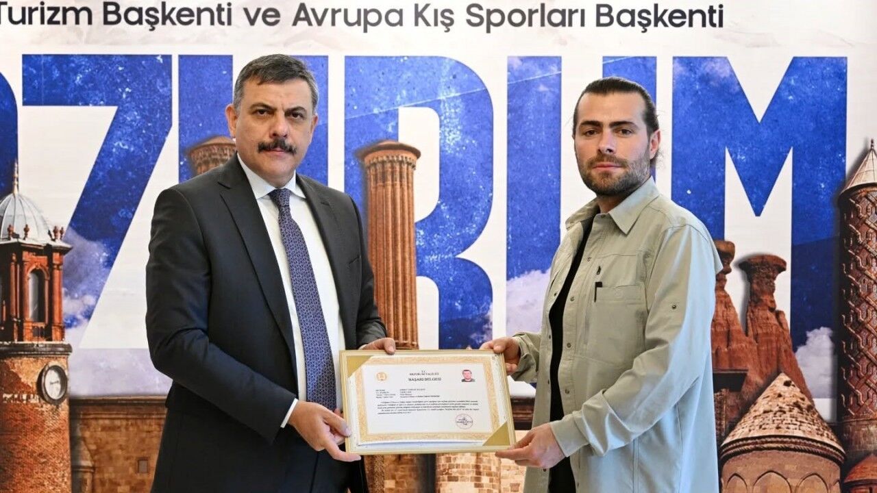 Erzurum Valisi Mustafa Çiftçi, çalışma ekibinde bulunan ve başka illere tayini çıkan iki personeli unutmadı, başarı belgesiyle ödüllendirdi.