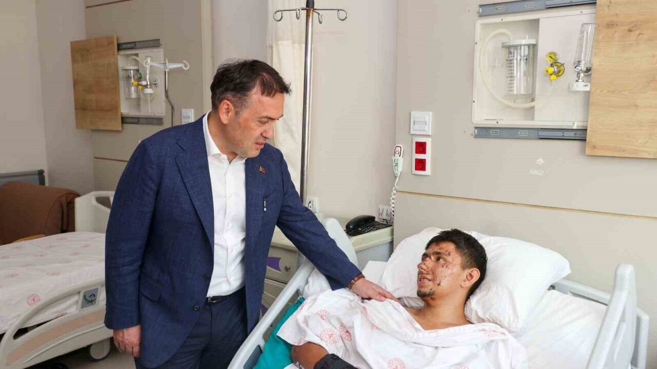 Hastalara geçmiş olsun dileklerini ileten Vali Sözer, sağlık durumları hakkında yetkililerden bilgi aldı. Ziyaret kapsamında, şehit Yücel Gökçe’nin babası Mustafa Gökçe’yi kaldığı serviste ziyaret eden Vali Sözer, geçmiş olsun temennilerini iletti.