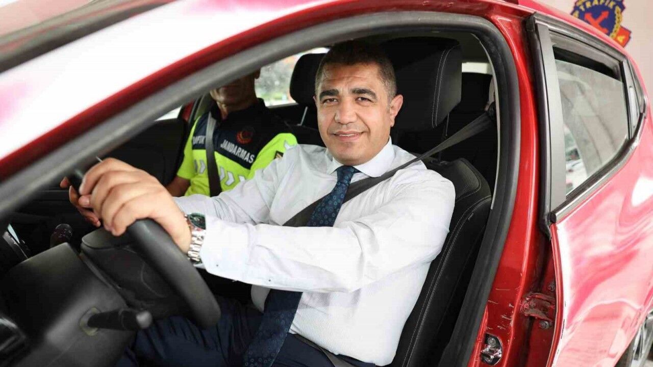 DÜZCE (İHA) – Bir kural, bir ömür boyu sürecek bir fark oluşturur mottosu ile Düzce’de Mobil trafik eğitim tırında direksiyon başına geçen Düzce Valisi Selçuk Aslan, takla atan otomobile bindi. Aslan araçtan indikten sonra emniyet kemerinin önemine dikkat çekti.