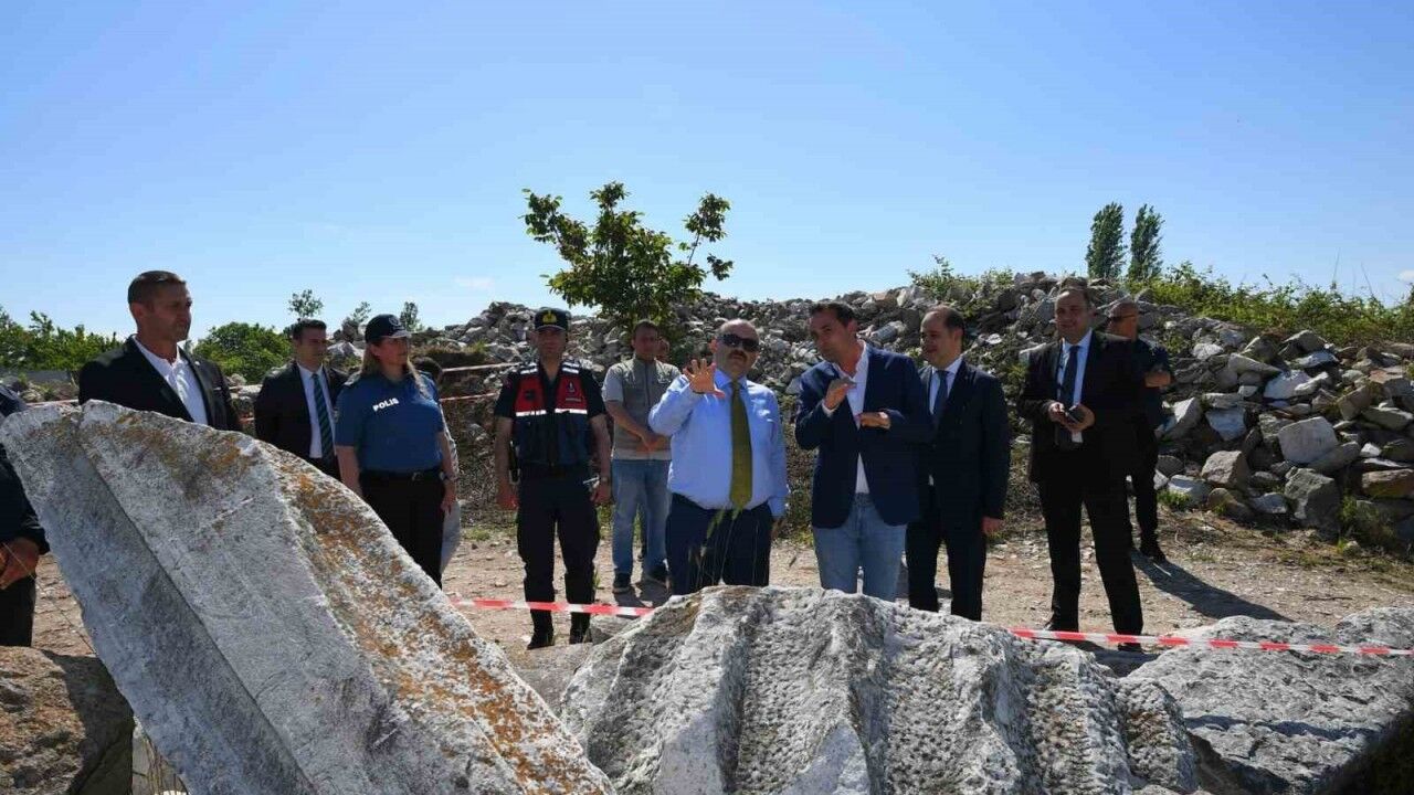 Balıkesir Valisi İsmail Ustaoğlu, Erdek ilçesinde bulunan Kyzikos Antik Kenti’ni ziyaret ederek, yürütülen kazı çalışmaları hakkında bilgi aldı.