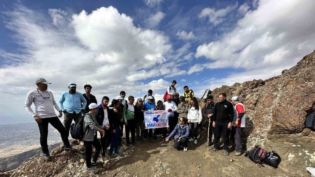 Vangölü Aktivistleri Spor Kulübü üyeleri, dünyanın en büyük sodalı gölü olan Van Gölü’ne dikkat çekmek için 3 bin 204 rakımlı Erek Dağı’na tırmandı.