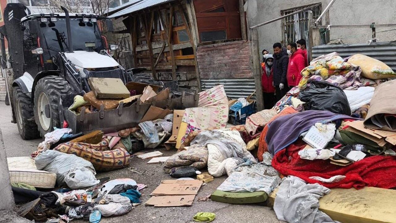Van’ın Tuşba ilçesinde kötü koku ve haşere şikâyetleri üzerine incelenen bir evden 2 kamyon dolusu çöp çıkarıldı.