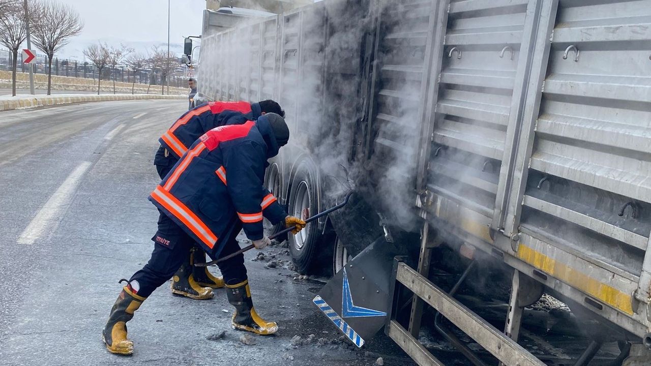 Van'ın Edremit ilçesinde seyir halindeki tırın yanan lastikleri itfaiye ekipleri tarafından söndürüldü.