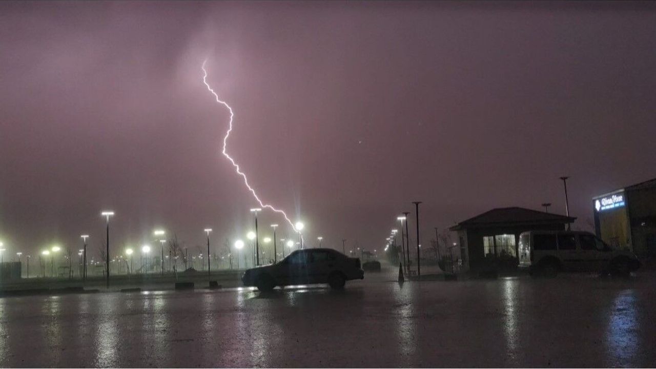 Meteoroloji Genel Müdürlüğü’nün yağış uyarılarının ardından Van’da akşam saatlerinde etkili olan yağmurla birlikte çakan şimşekler gecenin karanlığını aydınlattı. Gökyüzü, belirli aralıklarla çakan şimşekler ile aydınlandı. Kentte zaman zaman dolu da etkili olurken, yağış kısa bir süre sonra son buldu.
