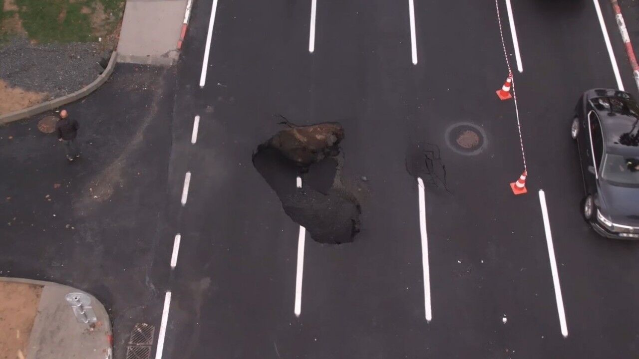 İstanbul’da gece boyu etkili olan yağış nedeniyle Vatan Caddesi’nde çöken yol havadan görüntülendi.