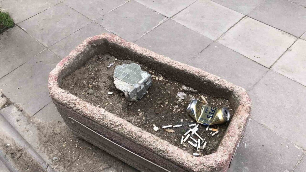 Eskişehir’de yere izmarit atılmasını yasaklayan karar sonrası, bazı vatandaşlar izmaritleri saksılara atmaya başladı.