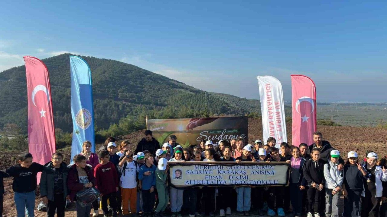 Ali Kütahya İlköğretim ve Ortaokul öğrencileri, vefat eden öğretmenleri Sabriye Karakaş’ın hatırasını yaşatmak adına 120 adet fidanı toprakla buluşturdu.