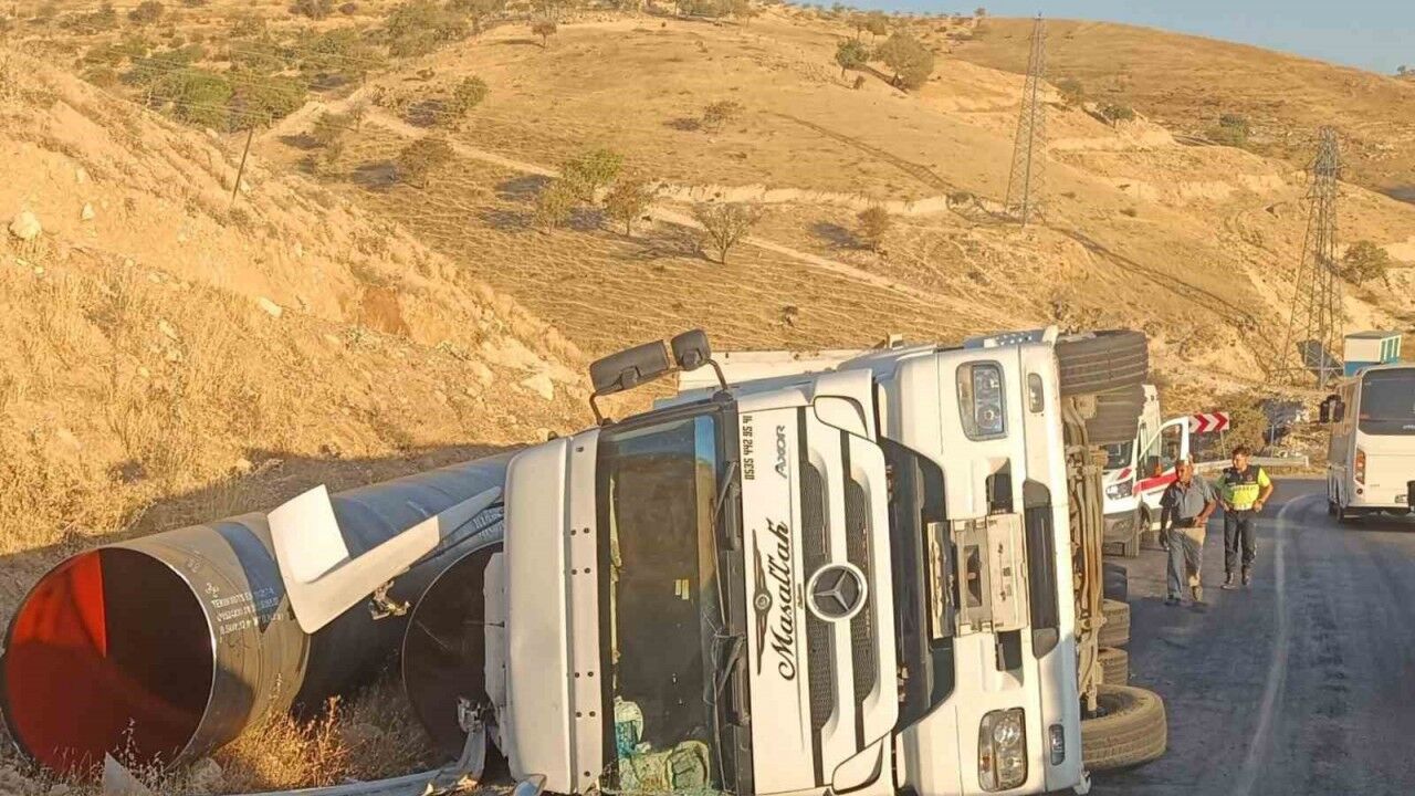Siirt’te viraj alamayarak sürücüsünün kontrolünden çıkan tır devrildi.