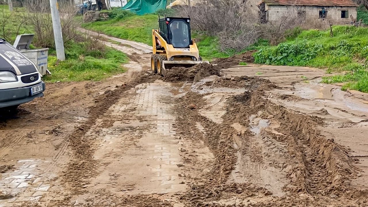 Efeler Belediyesi, ilçede etkili olan yoğun yağışların ardından kapanan yolları açıyor.