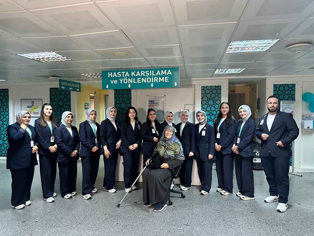 Hasta karşılama ve yönlendirme birimini gördükten sonra artık hiç kimseye ihtiyaç duymadan hastaneye gelebileceğini dile getiren Meryem Karali Ceylan isimli vatandaş "Bir gün önce rahatsızlanmıştım hastaneye dahiliye uzmanına muayene olmak için geldim, çok kalabalıktı. Sıra gelene kadar kalbim ağrımaya başladı. O sırada aile hekiminin olduğunu söylediler. Aile hekimine girdim. Aile hekimi Dr. Mehmet İrşad Kuraç vardı, onu gördüm iyileştim ben zaten. Çok merhametli bir insan. Beni hasta karşılama ekibinde görevli kızımla beraber hastanedeki tüm işlemlerimi yaptım. Kalp filmlerim, ciğer, dalak filmlerim hepsini beraber çektirdik. Doktorum da benle çok ilgilendi. Bundan sonra hastaneye yalnız da gelebilirim. Hasta karşılamadaki arkadaşlar tüm işlerimizi hallediyor. Bu hastalık bende yıllardır vardı, ilk defa bu kadar rahatım. Ben daha kimseye yalvarmıyorum benle hastaneye gel diye. Her katta hasta karşılama var ilgileniyorlar hepsinden Allah razı olsun" ifadelerini kullandı.
