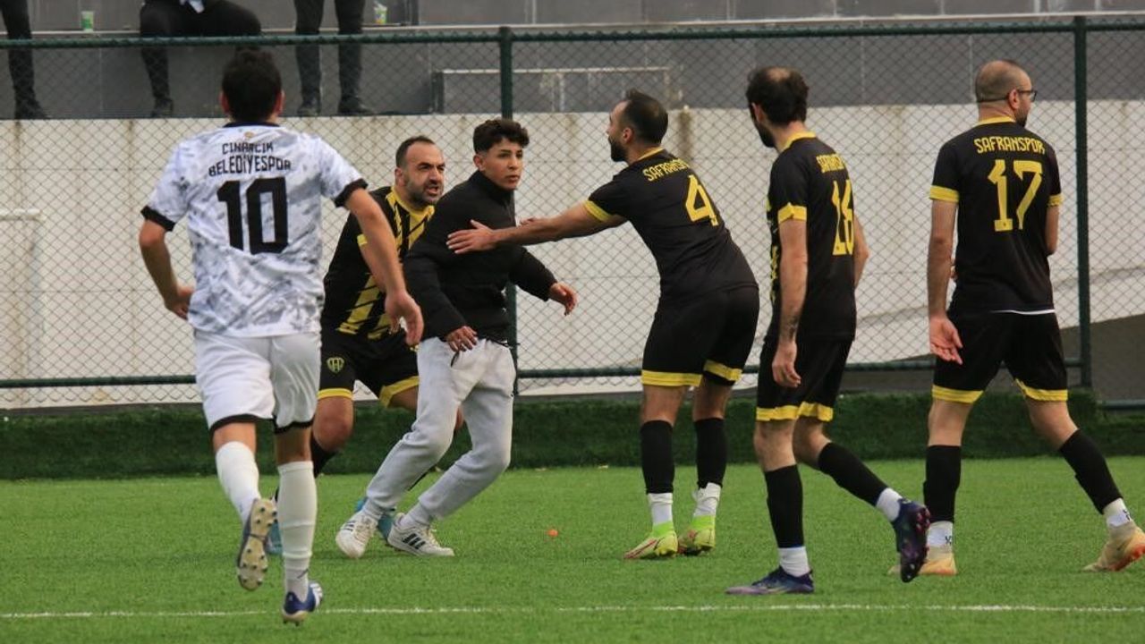 Esenköy sahasında Çınarcık Belediyespor ile Safranspor kozlarını paylaştı. Mücadelenin ilk yarısını konuk ekip 2-1 üstünlükte tamamladı. İkinci yarının başında ev sahibi, durumu 2-2 yaptı. Ancak Safranspor peş peşe goller bularak 4-2 öne geçerken, konuk ekibin gol sevinci sonrasında yeşil saha bir anda karıştı. Tribünden atlayan taraftarları jandarma ekipleri güçlükle önledi. Olaylar esnasında ev sahibi ekibin savunma oyuncusu Doğan Erbiçer, rakip oyunculara saldırması nedeniyle kırmızı kartla oyun dışına gönderildi. Mücadeleyi Safranspor 7-4 kazanırken, maçın hakemi Batuhan Kösem mücadelede 1 kırmızı, 9 da sarı kart gösterdi.