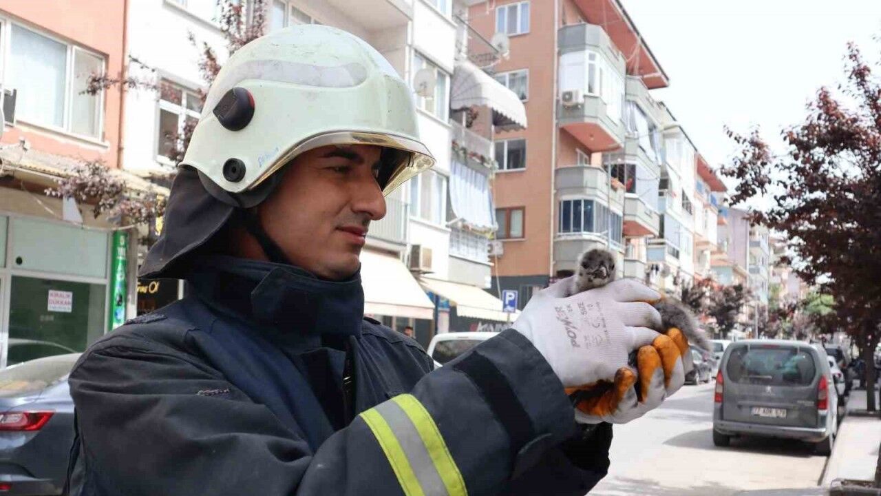 Yalova’da bir binanın çatısından düşen yavru martı, itfaiye ekipleri tarafından kurtarılarak çatıdaki yuvasına bırakıldı.