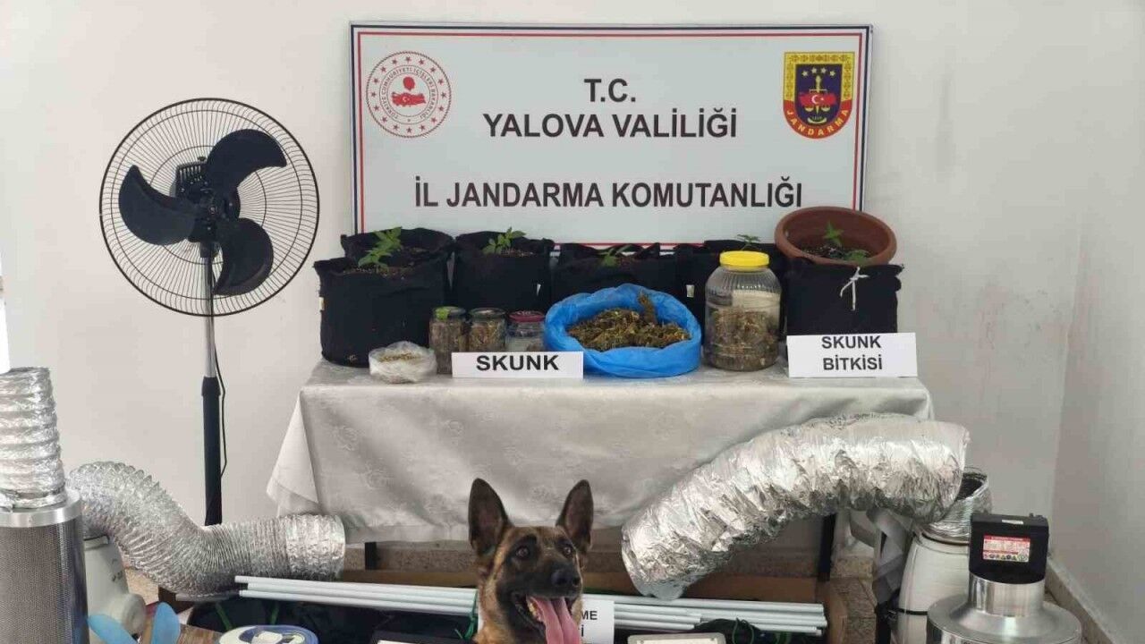 Alınan bilgiye göre, Yalova İl Jandarma Komutanlığı ekipleri, O.D.’nin Çınarcık ilçesinde bulunan evinde kurduğu iklimlendirme düzeneği ile skunk bitkisi yetiştirdiği ve uyuşturucu ticareti yaptığı bilgisine ulaştı. Jandarma ekiplerinin eve yönelik düzenlediği operasyonda 658 gram skunk, 7 kök skunk bitkisi, 1.74 gram kenevir tohumu, 2 iklimlendirme çadırı, 2 soğutucu led panel, 3 vantilatör, 2 elektronik fan, 16 iklimlendirme malzemesi ele geçirdi.