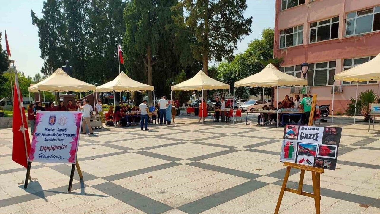 Manisa’nın Sarıgöl ilçesinde, Milli Egemenlik Çok Programlı Anadolu Lisesi tarafından Hükümet Konağı bahçesinde düzenlenen yardım etkinliğinden elde edilecek gelirin tamamı Gazze’ye bağışlanacak.