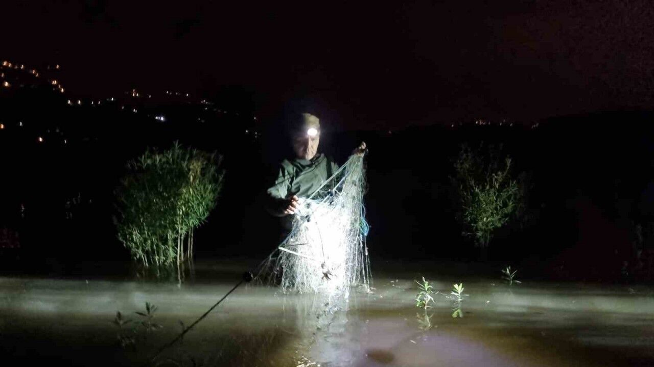 DÜZCE(İHA) –Düzce’nin Efteni Gölünde Doğa Koruma ve Milli Parklar Şube Müdürlüğüne bağlı ekipler gece yaptıkları denetimde kurulu halde 500 metre uzunluğunda balık yakalama ağına el koydu.