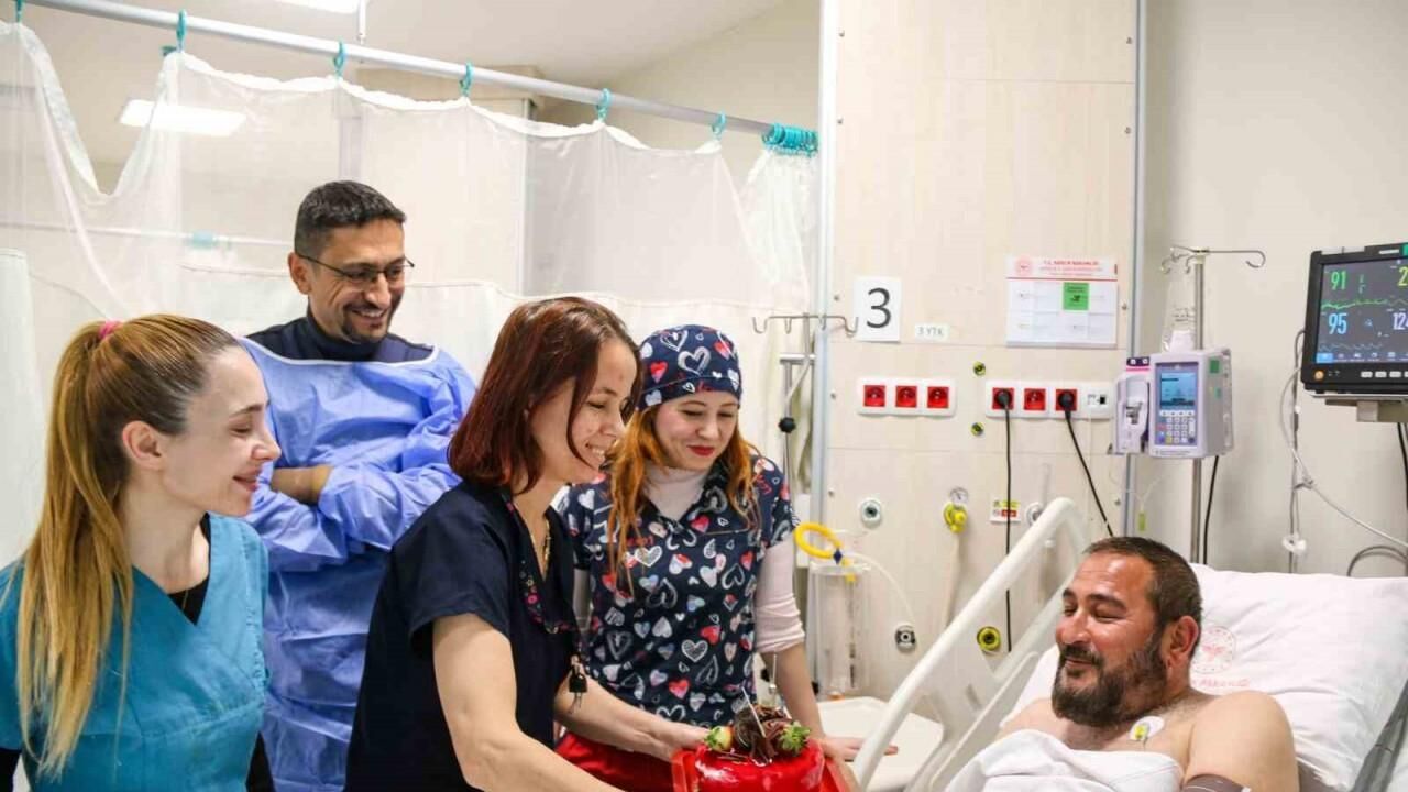 Antalya’da yaşayan 41 yaşındaki Ömer Hancı, doğum gününde kalp krizi geçirince acil anjiyo yapıldı. Hancı’nın yarım kalan doğum günü sevincini yoğun bakım ünitesinde hastane personeli tamamladı. Gözlerini açtığında karşısında doğum günü pastasını gören Hancı, "Doktorların ve hemşirelerin ilgisi sayesinde ikinci hayatımı yaşıyorum. Doğum günü pastasıyla beni çok mutlu ettiler" sözlerine yer verdi.