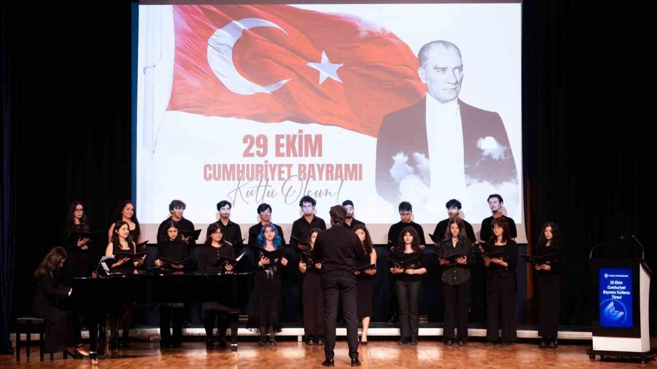 Etkinlik, Yaşar Üniversitesi Müzik Bölümü Korosu’nun dinletisiyle devam etti; izleyiciler, ellerindeki Türk bayraklarını sallayarak şarkılara eşlik etti.