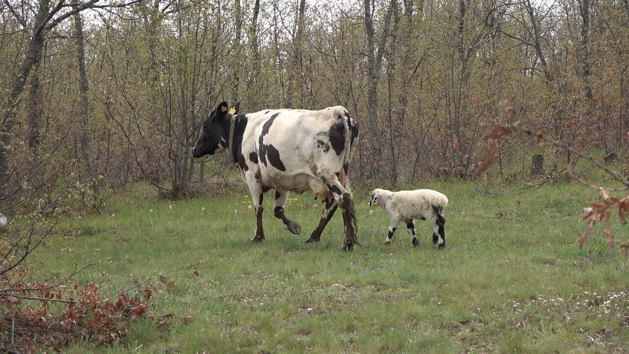 Yozgat’ta buzağısını kaybeden inek, annesi ölen kuzuyu sahiplendi. İnek ve kuzu arasındaki bağ, görenleri duygulandırdı.
