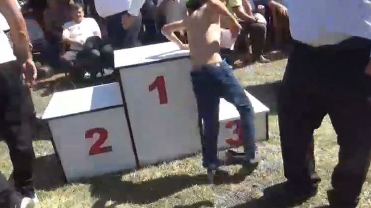 Bolu’da geleneksel olarak her yıl düzenlenen Karapınar Bayramı’nda yapılan karakucak güreşleri şampiyon olan 8 yaşındaki Hamza Demirhan, ödülünü almak için çıktığı kürsüye ayakkabılarını çıkararak çıktı.