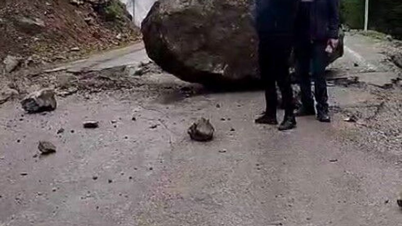 Gümüşhane’nin Kürtün ilçesinde bulunan Erikbeli Yaylası’na gitmek isteyen Nedim Güvendi ve arkadaşları Kale Mahallesi yol ayrımı mevkiinde devasa kaya kütlesinin altında kalmaktan son anda kurtuldu. Dağ yamacından kopan ve yolun ortasına düşen kayanın boyutu yaşanabilecek facianın boyutlarını gözler önüne sererken vatandaşlar yol güzergâhında önlem alınmadığını söyleyerek yetkililere çağrıda bulundular.