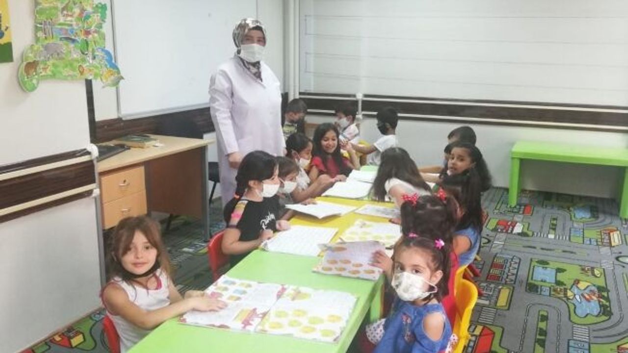 5-6 yaş grubundaki çocuklara ders veren Kur’an Kursu eğitmeni Zehra Solmaz, “Kursumuza gelen çocuklarımız için Kur’an-ı Kerim dersleri veriliyor. Kursumuza gelen çocuklara Kur’an, sure, masal, siyer dersleri işleniyor. Siyer derslerimizde Diyanet İşleri Başkanlığı kaynaklarından yararlanıyoruz. Kur’an dersimizde Elif-Ba’yı geçen çocuklarımız bulunuyor. Bu çocuklar arasında Kur’an’a geçen çocuklarımız içinse günlük olarak 1 ya da 2 saatlik çalışma ile Kur’an derslerini geliştiriyoruz. Evlerine giden çocuklar derslerine çalışıyorlar ve ertesi gün kursa geldiklerinde nasıl çalıştıklarını tekrar yaptırıyoruz. Müfredatta belirlenen surelere çalışıyoruz. Çocukların kursta sıkılmamaları için çeşitli oyunlar oynuyoruz” diye konuştu.