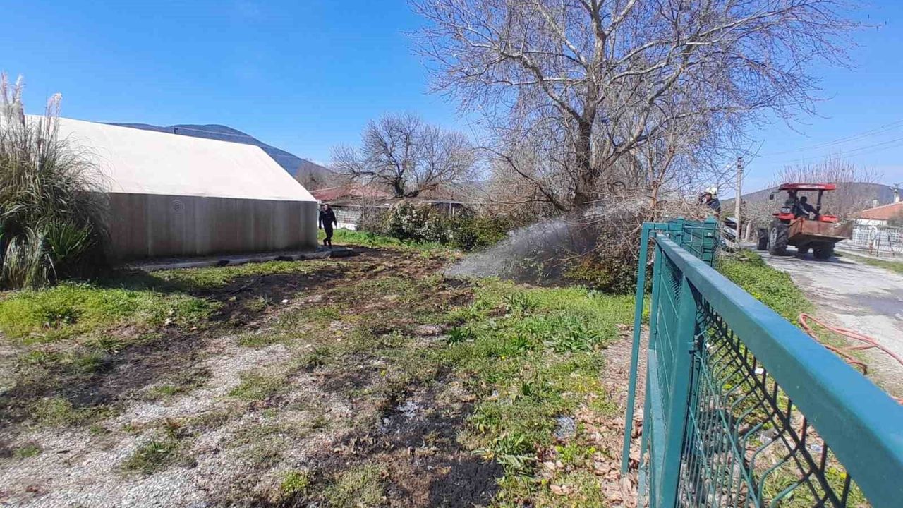 112 Acil Çağrı Merkezine bilgi verilmesi üzerine bölgeye Muğla Büyükşehir Belediyesi İtfaiye acil müdahale aracı sevk edildi. Yangına ilk müdahale bölgede bulunan Menteşe Belediyesine ait su tankeri ile yapıldı. Olay yerine gelen itfaiye ekipleri tarafından otluk alanda başlayan yangın Muğla Büyükşehir Belediyesine ait ipek böceği besleme çadırına sıçradı. Ekiplerin müdahalesi ile yaklaşık 4 metrelik taban kısmı zarar gördü. Ayrıca bir çınar ağacı kısmen yanarken, çevredeki otluk alan da yangından etkilendi.