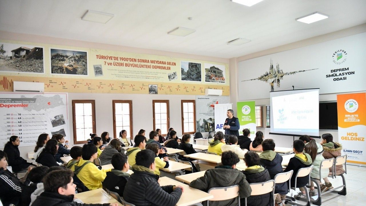 Yeşilyurt Belediyesi Afet İşleri ve Risk Yönetimi Müdürlüğü, afetlere karşı bilinçli ve hazırlıklı nesiller yetiştirmek amacıyla Deprem Eğitim ve Simülasyon Merkezinde öğrencilere yönelik kapsamlı deprem eğitimleri vermeye devam ediyor. İlçedeki farklı okullardan gelen öğrencilerin yoğun ilgi gösterdiği eğitim programlarında, deprem öncesi, deprem anı ve deprem sonrası yapılması gerekenler uygulamalı ve interaktif yöntemlerle anlatılıyor.